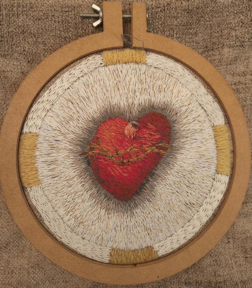 Con esta obra quiero transmitir el milagro de tenerlo a Jesús en cada Eucaristía. Milagro de Amor que se nos ofrece cada día. Con un corazón totalmente encarnecido, que sangra de Amor por nosotros. De un amor infinito que se hace carne en cada Misa para habitar dentro nuestro y enseñarnos a amar.